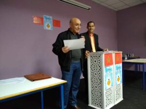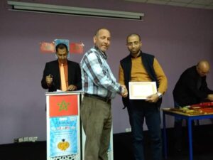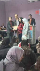 الشريف د- جهاد ابومحفوظ رئيس مجلس الكتاب والادباء والمثقفين العرب يشارك طلاب ثانوية ابن الهيثم التأهيلية بالقنيطرة