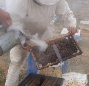 La ruche n’est ouverte que lorsqu’il fait beau et que la majorité des abeilles sont à l’extérieur, ce qui facilite le travail. Le processus de fumage utilise des fumeurs de différents types, qui fonctionnent tous sur le même principe.