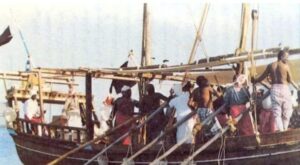 لطول فترة التجديف يشجع النهام البحارة بأشعاره الجميلة المتنوعة :